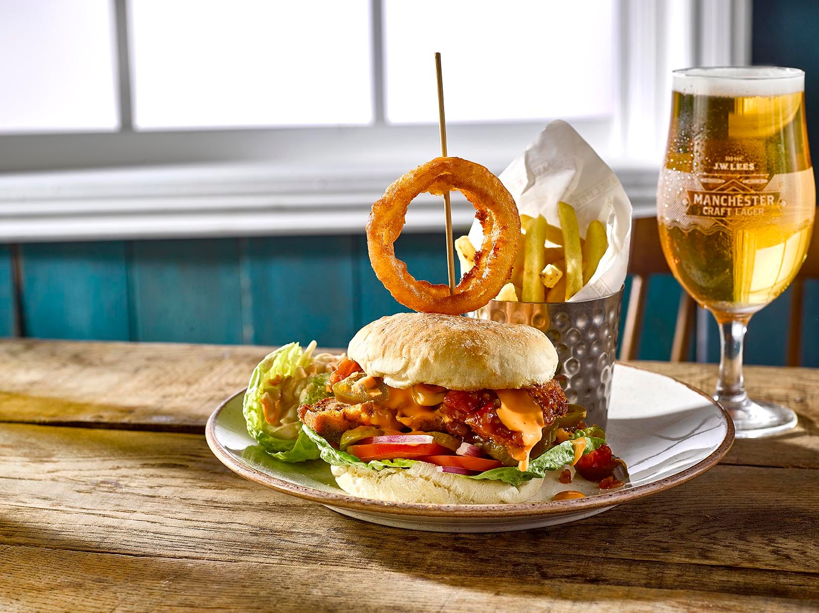 Pull up a chair with our new Spring menu in Plumley. Enjoy delicious seasonal dishes, made for warm days and cold pints with friends and family. Perfect for pairing with our Manchester-made beers, our new menu includes seasonal salads, new signature dishes, succulent grills and more. Not forgetting your pub favourites like our legendary cheese & onion pie, MPA battered cod fillet and the iconic Brewery tower burger.